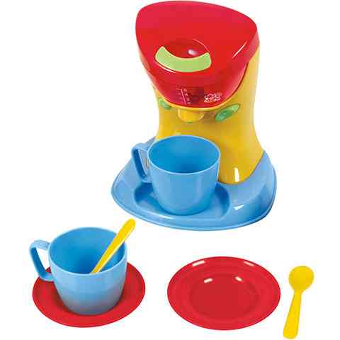 A Playgo háztartási játékai és kiegészítői a gyerekek számára lehetővé teszik, hogy élethű kellékekkel rendezhessék be saját konyhájukat. A kávéfőző készlete a kicsiknek kedvez egyszerű működésének és vidám, élénk színeinek köszönhetően. Nyisd fel a kávéfőző tetejét, tölts bele vizet, tegyél egy bögrét a kávéfőző kiöntő része alá, és nyomd meg a gombot, hogy a gép elkészíthesse a játék kávét. Gyermeked boldogan fogja felszolgálni a meleg italt vendégeinek a készlethez tartozó kávéscsészékben, melyekhez alátétet és kanalakat is kap a csomagban.
