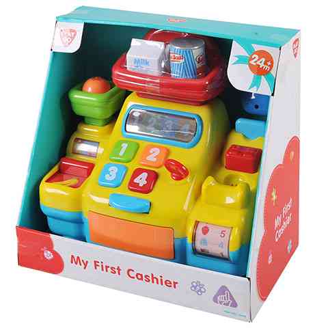 A kisbabák imádják azokat a játékokat amelyeken sok nyomogatható gomb van, és aligha találni jobb játékot egy pénztárgépnél, ami aztán igazán sok gombot és érdekességet találni. Ez a pénztárgép színes benyomható, pörgethető, kapcsolható, tekerhető részekkel rendelkezik. A négy nagy, színes nyomógombbal kellemes és vidám dallamokat csalhatunk elő a játékból, amit ritmusra villogó kijelző egészít ki. A csipogós kódleolvasóval és a gombbal nyitható tárolórekesszel a gyerekek nagyszerűen el tudnak játszani.