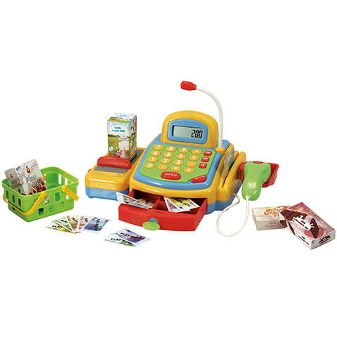 Nyisd meg saját szupermarketedet a Playgo pénztárgép szettjének segítségével, melyhez kosár és mikrofon jár, a legnagyobb játékélményért. A gumiból készült nyomógombokkal beütheted a vásárolt termékek árát, digitális számolórészen követve az összeget, a pénztárból pedig kulccsal nyitva veheted ki a visszajárót. A szuper szettben világító, kézi vonalkód leolvasó, mikrofon és futószalag garantálja a teljes körű kiszolgálást, így biztos lehetsz abban, hogy rengeteg betérő vásárlód lesz. A kézi bevásárlókosár, a játék élelmiszerek és a játékpénz mind a készlet részei.