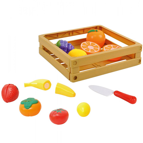 Ez a gyümölcskosár nagyszerű választás a gyerekek számára, hiszen remek lehetőséget kínál a kicsiknek, hogy megismerkedjenek a zöldségek és gyümölcsök feldarabolását. A készletben egy szuper kosár is található, amiben a olyan gyümölcsök találhatók, mint a banán, a narancs, a szőlő és a citrom. A dobozban egy kés is található, amivel a gyerekek szépen megtanulhatják, hogy miként kell felvágni azokat. A játék során kiválóan fejlődik a gyerekek szem-kéz koordinációja és ügyessége.