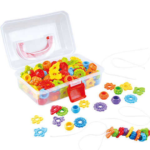 A színes gyöngyfűző készlet a kreatív kislányok kedvenc időtöltésének, a gyöngyfűzésnek kedvez. A ládika praktikus tárolási lehetőséget nyújt a gyöngyöknek, így kis helyen is elférnek, bárhová magával vihetik a gyerekek, és nem fenyegeti őket az a veszély sem, hogy elvesznek a darabok. A rengeteg féle formát és színt ötvöző gyöngyfűző készlet segítségével a kislányok olyan karkötőt, illetve nyakláncot készíthetnek, amilyet csak szeretnének, hiszen a képzeletük az egyetlen, ami alkotásuknak határt szabhat. A készletben 150 db gyöngy és 6 db vastag zsineg található.