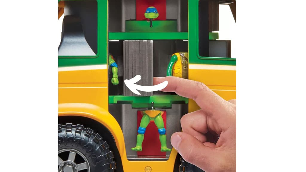 Ez a Playmates Toys játékkészlet a Tini Nindzsa Teknőcök pizza szállító furgonból és a Tini Nindzsa Teknőcök csapat akciófiguráiból áll! A gyerekek beültethetik az akciófigurákat a furgon Mutációs Állomásába, és kedvük szerint keverhetik és párosíthatják őket. Ezután kipattinthatják a furgon tetejét, hogy a három különböző részt kombinálva egy vadonatúj akciófigurát hozzanak létre, amely három különböző Tini Nindzsa Teknőcök karakter kombinációja!
