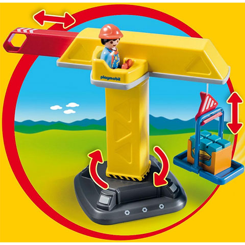 Egy toronydaru működés a felnőtteket is elvarázsolja, így nem csoda, hogy a gyerekek körében hatalmas sikere van ennek a készletnek. A daru úgy lett kialakítva, hogy egy figura kényelmesen elférjen a vezérlőfülkében, ráadásul valódi emelő funkcióval is rendelkezik, és akár körbe is lehet forgatni. A Playmobil 1-2-3 szettek kifejezetten a kicsi, másfél éves korú gyerekek számára lettek kitalálva, így az alkotóelemek és kiegészítők nagyobbak, hogy a kicsiknek kényelmes fogás essen rajtuk, és véletlenül se tudják lenyelni az egyes darabokat.
