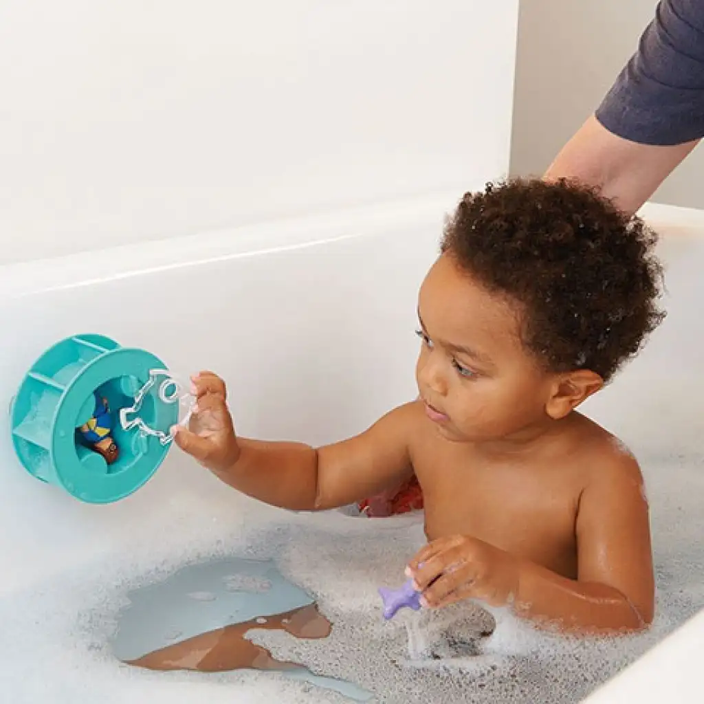 A Playmobil 1.2.3 fürdőjátékok segítségével a kicsik jól szórakozhatnak pancsizás közben is. A bébicápával kiegészített vízikerék maximális élményt nyújt a fürdőkádban vagy a medencében. Egyszerűen rögzítse a vízikereket a tapadókoronggal a kád vagy csempe szélére, helyezze be a figurát a közepébe, és csukja be az ajtót. A piros pohár segítségével a vizet a keréklapátokba öntve a kerék forogni kezd. A játékkészlet tartalmaz egy Playmobil 1.2.3 figurát, bébicápát, vízikereket és egy poharat. A bébicápa lebeg a víz tetején. A Playmobil figurák és kiegészítők kompatibilisek egymással így a gyerekek szabadon variálhatják őket, hogy egy igazi, színes és változatos világot alkossanak meg általuk, amelyekben a legkülönösebb történeteket is el lehet játszani.