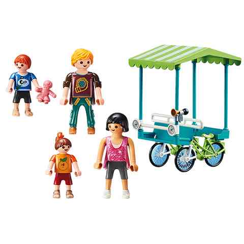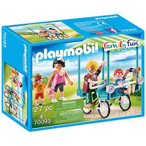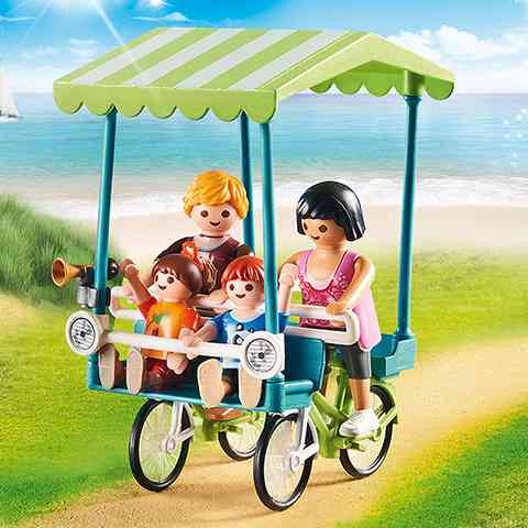 Hogy milyen egy bringa négy kerékkel és annyi hellyel, hogy egy négy fős család elférjen rajta? Hát pont olyan mint egy vagány bringóhintó. Ezzel a különleges járgánnyal a nyaralóhelyek környékén lehet találkozni és kipróbálni. A Playmobil figurák és kiegészítők kompatibilisek egymással így a gyerekek szabadon variálhatják őket, hogy egy igazi, színes és változatos világot alkossanak meg általuk, amelyekben a legkülönösebb történeteket is el lehet játszani.