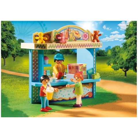 Fantasztikus szórakozás vár a gyerekekre ebben a csodálatos vidámparkban, mely összesen 130db alkotóelemből állítható össze. A szettben megtalálható a nagy körhinta, melyet a gyerekek egy kar segítségével tudnak tekerni, hogy körbeforogjon. van benne egy hintahajó, ami akár át is tud pördülni, valamint egy büfé is, hogy a móka után jóllakhassanak a látogatók. Ez a hatalmas Playmobil szett a hinták és büfé mellett 9db Playmobil figurát és számos kiegészítőt tartalmaz, melyek még szórakoztatóbbá teszik majd a játékot.