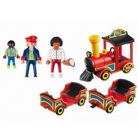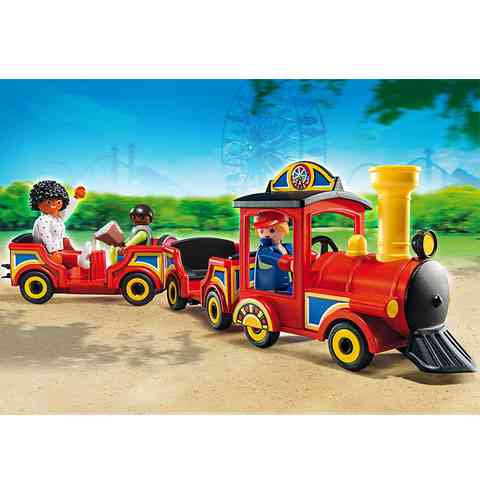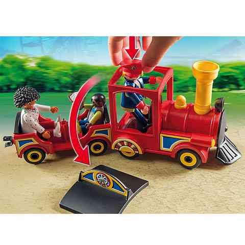 Pöfögj végig a vidámpark körül az utasokkal ezen a gyermekvasúton! Egy szép napra virradt a vidámpark, és tele van látogatókkal. A Playmobil vasutas már alig várja, hogy megteljen a vonat utasokkal, és elindulhasson a körutazásra. Csak le kell venni a vonat tetejét, és a masiniszta betehető a fülkébe. A Vagonok a mozdonnyal összekapcsolhatóak, és egyszerre mozgathatóak.