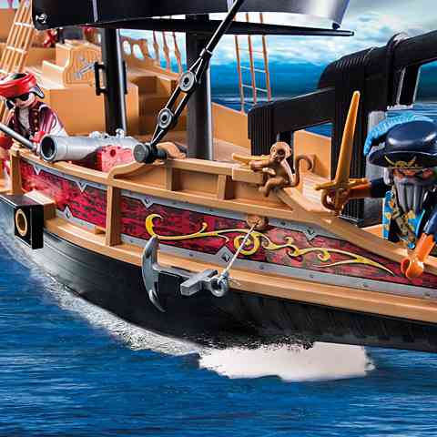 Hódítsd meg a hullámzó tengereket a kalózokkal, akik ezen a fantasztikus kalózhajón kelhetnek útra! A különleges, nagy méretű hajó jellegzetes fekete vitorlákkal rendelkezik, rajta a kalózok jól ismert jelével, a koponyával. Ha már közel az ellenség akár az ágyúkat is bevetheted, hiszen valóban működőképesek, ehhez a szettben található lövedékeket használhatod. Rejtsd el a kincset és a lőszert a hajó titkos rekeszében, vagy épp mássz fel az árbócra a vizet kémlelni!