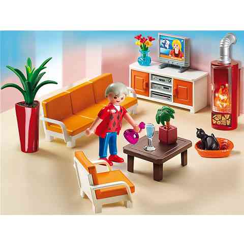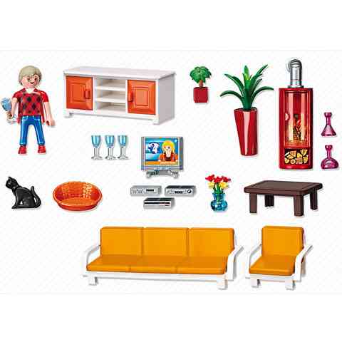 - a készlet tartalmaz 1 Playmobil figurát, és egy teljesen felszerelt nappalit