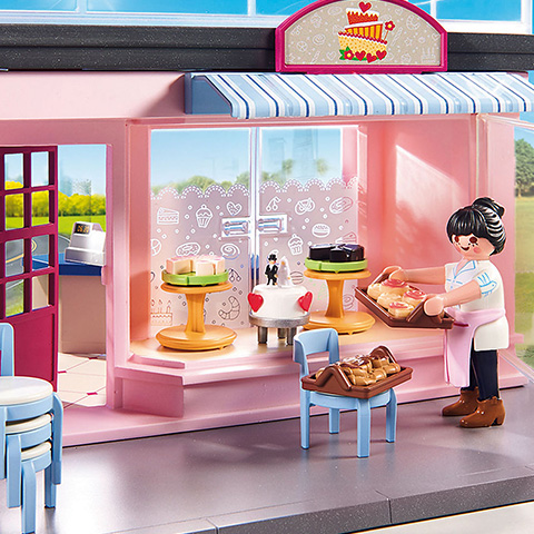 A kisvárosi kávézóval alaposan fel lehet dobni a környék hangulatát, hiszen mindjárt lesz egy jó kis hely a városban ahol a barátok összejöhetnek, vagy ahol egy üzleti megbeszélést le lehet folytatni. A kávézóban természetesen sütit is lehet kapni így a gyerekek is imádják a helyet. A Playmobil figurák és kiegészítők kompatibilisek egymással így a gyerekek szabadon variálhatják őket, hogy egy igazi, színes és változatos világot alkossanak meg általuk, amelyekben a legkülönösebb történeteket is el lehet játszani.