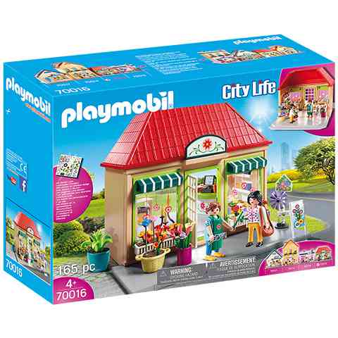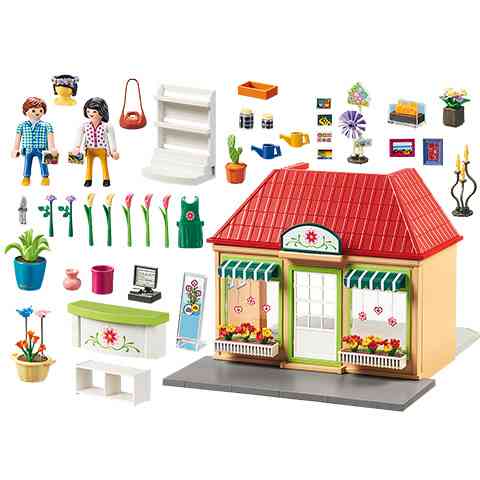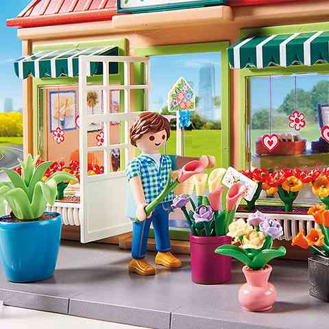 A virágboltban mindig nagy forgalom van, hiszen mindig akad olyan alkalom, amikor virágot kell venni, legyen az születés- vagy névnap, esküvő, ballagás vagy éppen anyák napja. Ebben a szép és rendezett kis boltban mindenki megtalálja azt a virágot, ami leginkább illik az alkalomhoz. A Playmobil figurák és kiegészítők kompatibilisek egymással így a gyerekek szabadon variálhatják őket, hogy egy igazi, színes és változatos világot alkossanak meg általuk, amelyekben a legkülönösebb történeteket is el lehet játszani.