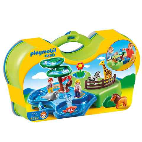 Tölts egy felejthetetlen napot ebben a locsipocsi állatkertben! Ez a Playmobil kislány és kisfiú most hatalmas élményben részesül. A szülei ajándékként elviszik az állatkertbe, ahol megsimogathatja kedvenc állatait. Az állatkertben külön részt kaptak a vízi, és a szárazföldi állatok. A vízi részen egy bájos fóka, és egy aranyhaj fogadja a kis látogatót, a szárazföldi részen mi mást is találhatnánk mint egy kis zsiráfot, és egy zebrát.
