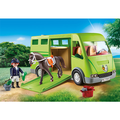 Minden olyan gyereknek remek ajándék ez a Playmobil készlet, akik odáig vannak a lovakért, hiszen ezzel a lószállító kocsival nagyszerű kalandokat lehet eljátszani. A lószállító autóval két ló szállítható a versenyre, ráadásul két figura számára is hálóhelyet biztosít. A lószállító kocsi teteje levehető, így a gyerekek jobban hozzáférhetnek a belső térhez. A vezetőfülkében két figura számára van hely. A lovak a lenyitható oldalrámpán juthatnak az autó belsejébe. A két kis adagoló az utastér mögött fűcsomókkal tölthető meg. A csomagtérben, amely a két kinyitható hátsó ajtó mögött érhető el, két lovasszett, egy doboz a lovak gondozásához és egy vödör tárolhatók. A csomagtér felett két kényelemes ágy található a lovasok számára. A Playmobil figurák és kiegészítők kompatibilisek egymással így a gyerekek szabadon variálhatják őket, hogy egy igazi, színes és változatos világot alkossanak meg általuk, amelyekben a legkülönösebb történeteket is el lehet játszani.