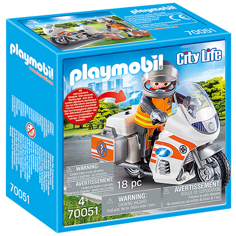 Egyre több országban találkozhatunk motoros mentővel, ami nem is csoda, hiszen a nagy forgalomban a motorosok nagyon gyorsan a baleset helyszínére tudnak érni. A képzett doki a motoron lévő felszereléssel megkezdheti a sérültek ellátását, amíg a mentőautó oda nem ér. A Playmobil figurák és kiegészítők kompatibilisek egymással így a gyerekek szabadon variálhatják őket, hogy egy igazi, színes és változatos világot alkossanak meg általuk, amelyekben a legkülönösebb történeteket is el lehet játszani.