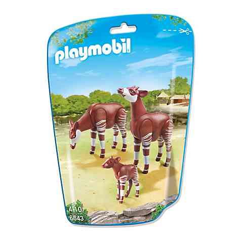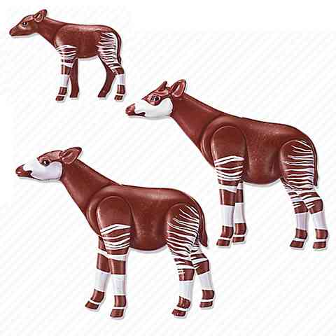 Az okapik rendkívül egzotikus állatok, így csak a legnagyobb állatkertek büszkélkedhetnek velük, és külön csoda számba megy, ha a okapi borjú születik valahol. Ebben a csomagban a két kifejlett okapi mellett, egy okapi borjút is találsz. Ezzel a három új állattal bővítheted a már meglévő, és nagyon népszerű Playmobil állatkertedet, és ezzel biztos lehetsz benne, hogy a játékvárosod minden lakója ellátogat megnézni az állatkerted új lakóit. Az állatok feje fel és le, valamint nagyok lábai külön-külön mozgathatóak.