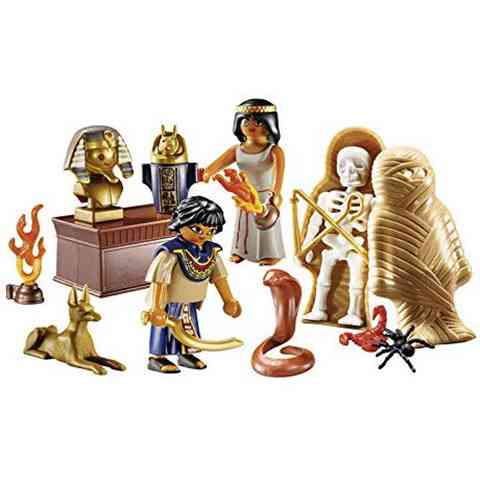 Az ókori Egyiptom egy egészen különleges világot rejt, aminek a legnagyobb felfedezői éppen a gyerekek lehetnek. A készletben természetesen két ókori egyiptomi figura található megannyi mesés kinccsel, de nem hiányozhat a szarkofágban rejtőző csontváz sem, aki talán nem nézi jó szemmel, hogy a kincseit babrálják. A Playmobil figurák és kiegészítők kompatibilisek egymással így a gyerekek szabadon variálhatják őket, hogy egy igazi, színes és változatos világot alkossanak meg általuk, amelyekben a legkülönösebb történeteket is el lehet játszani.