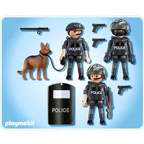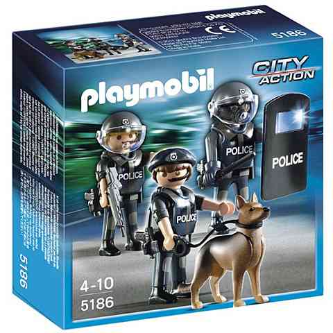 A veszélyes akciókhoz a legképzettebb kommandósokra lesz szükséged, hiszen csak ők tudják a megfelelő hatékonysággal végrehajtani a küldetést. A védőfelszerelés mellett természetesen fegyvereket is adhatsz az egység tagjainak, akiknek különleges társuk is akad ezen a bevetésen. A képzett kutya vezényszóra bármit végrehajt, ezzel nagyban segíti a Playmobil elit alakulat munkáját. Eredj a bűnözők nyomába!