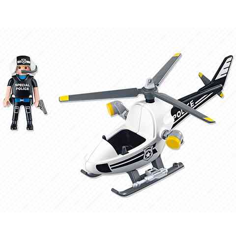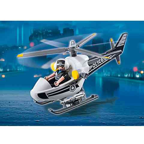 Playmobil városod rendőrségi blokádjából nem maradhat ki a légi járőr helikopter amely a magasból figyelheti a bűnözők menekülési útvonalát. Kövesd a bankrablókat a levegőből, hogy ne veszítsd szem elől őket és adj rádión utasításokat a szárazföldi csapatoknak hogy épp merre tart az ellenség. A helikopter reflektorait mozgathatod, így mindig a menekülő banditán tarthatod a fényt hogy ne vesszen egy pillanatra sem szem elől.