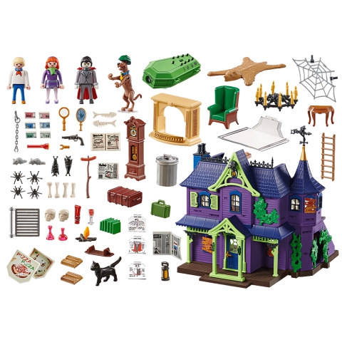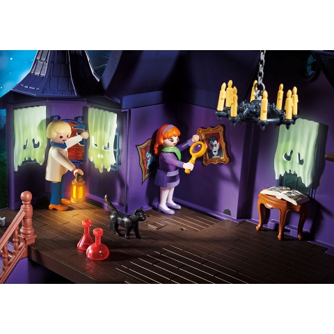 Egy életre szóló kaland várja a gyerekeket ebben a fantasztikus kísértetházban a Rejtély Rt. tagjaival és persze Scooby-Doo-val. Ez a gigantikus szett mindent tartalmaz az izgalmas játékhoz, kezdve a hatalmas szellemháztól a megannyi kiegészítőn keresztül egészen a trükkös részletekig. A Diána és Fred figura mellett természetesen Scooby-Doo Playmobil változata is megtalálható, valamint egy vámpír és egy szellem figura is. A szellem fluoreszkál a sötétben, akárcsak a ház több kiegészítője. A legfontosabb persze az, hogy a rejtett csapdák valóban működtethetőek is, mint a csúszkalépcső, vagy az elhúzható bokor. A szett remek választás azoknak, akik rajonganak Scooby-Doo izgalmas kalandjaiért.