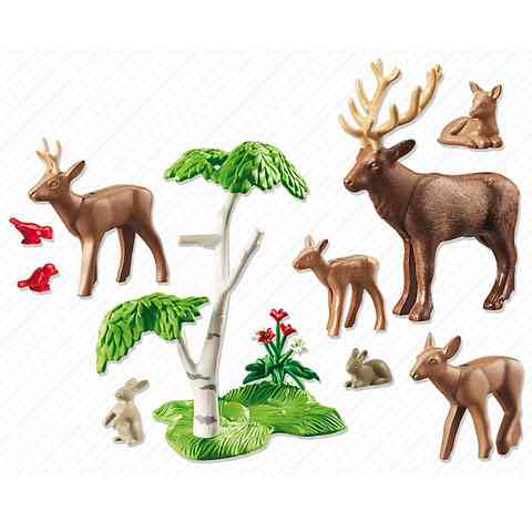 Egy kis bepillantást nyerhetünk a közeli erdő vadvilágába, ahol egy szarvascsalád éli a békés életét. A nagy termetű szarvasbika mindig figyel, és megvédi a családját, ami négy darab kis őzikéből áll. A békés erdei állatok között egy nyuszi pár is meghúzza magát, így egy igazi erdei idillt alakíthatsz ki. A Playmobil figurák és szerszámok kompatibilisek egymással így szabadon variálhatod őket, hogy egy igazi, színes és változatos világot alkoss meg általuk.