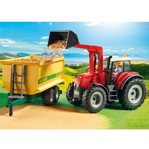 A tanyavilág mindig érdekes dolgokat tartogat a gyerekek számára, legyen az a sok mezőgazdasági gép, vagy a sok állat. Ebben a dobozban egy vagány traktor található, amivel a gyerekek remekül eljátszhatnak, hiszen a markolókanál segítségével megrámolhatják az utánfutót, amit a traktor mögé lehet akasztani. A Playmobil figurák és kiegészítők kompatibilisek egymással így a gyerekek szabadon variálhatják őket, hogy egy igazi, színes és változatos világot alkossanak meg általuk, amelyekben a legkülönösebb történeteket is el lehet játszani.