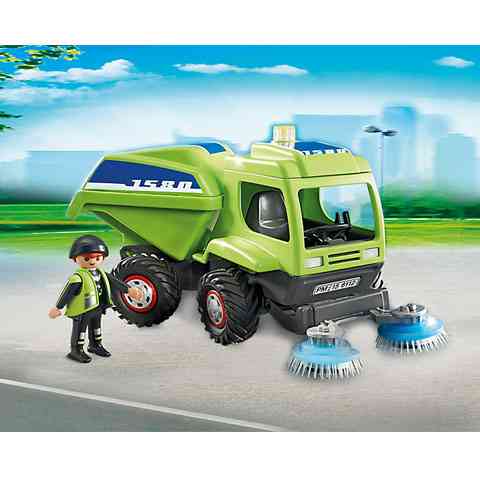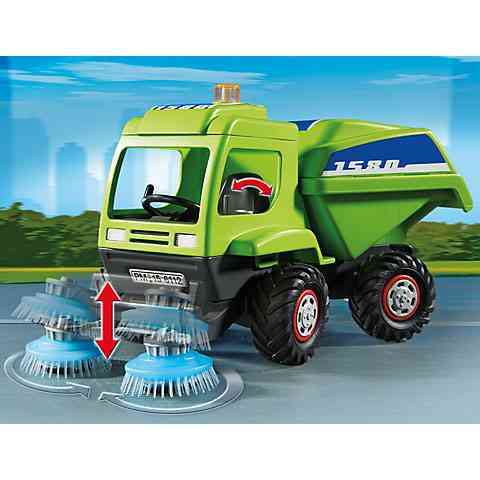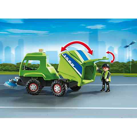 Minden Playmobil városban nagy hangsúlyt kell fektetni a tisztaságra, ezért elengedhetetlen kellék egy úttisztító gép amivel gyönyörű tisztára tudod varázsolni városod utcáit. Ültesd be Playmobil munkás figurádat a járműbe és indulhat a takarítás! Engedd le a földre a jármű elején található keféket, hogy felsúrolhassa az aszfaltot menet közben. Ha szemetet találsz az utcán, dobd a jármű hátulján található konténerbe, majd végül borítsd ki a szeméttelepen.
