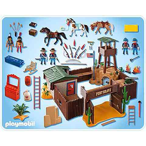 Mozgalmas lesz ez a csata, amit az indiánok és a területüket elfoglalni akaró katonák vívnak egymással. A fából megépített erődjük falain belül rendkívül sok fegyver áll rendelkezésükre, amit a csaták során fel is használnak az indiánokkal szemben. Az őrtoronyból messziről kiszúrják az ellenséget, hacsak az nem rejtőzik ügyesen a kaktuszok között. Játszd el a Playmobil indián háborút!