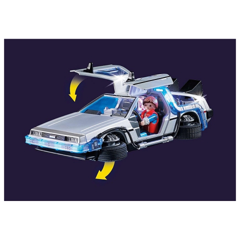 Sietni kell, hiszen a fantasztikus DeLorean készen áll arra, hogy Marty McFlyt és Dr. Emmettet visszarepítse a jövőbe a fluxuskondenzátor segítségével. Ez a fantasztikus szett tökéletesen mintázza meg az emblematikus Vissza a jövőbe című filmsiker szuper-sportkocsiját és karaktereit. A kocsi kerekei behajthatóak, akárcsak a filmben repülés közben. Szárnyas ajtajai felfelé nyílnak és gombnyomásra még világítanak is a rajta végigfutó kábelek. A figurák beültethetőek a kocsiba. A szett a számos izgalmas kiegészítőt és Dr. Emmett kutyáját. Einsteint is tartalmazza.
