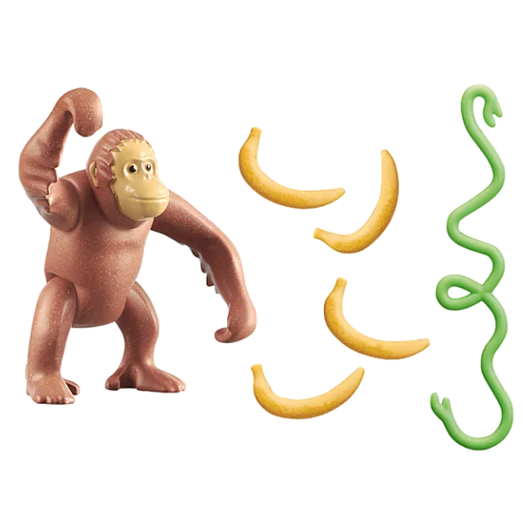 A PLAYMOBIL Wiltopia játékvilága izgalmas és védettségre méltó tájak felfedezésére ösztönzi a gyerekeket, és egyedülálló módon ötvözi a játékot a tanulással. A készlet tartalmaz egy orángutánt, egy liánt, négy banánt és egy állatismereti gyűjtőkártyát. Az orángután figura feje le és fel, lábai pedig külön-külön mozgathatók, így a gyerekek számára számos lehetőséget kínál a kreatív játékhoz.