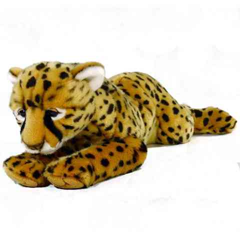 A gepárd a macskafélék családjába tartozó Acinonyx nembe tartozó egyetlen élő faj. Jellegzetes ragadozó, mely lopakodás vagy falkában vadászás helyett inkább gyorsasági fölényét kihasználva ejti el áldozatát. Gondoltad volna, hogy a gepárd a leggyorsabb szárazföldi emlős? Maximális sebessége egyes kutatások szerint rövid távon eléri a 110–120 km/óra sebességet is. Te hol tartanád a szobádban ennek a szélsebes vádásznak a méretarányos 46 cm-es plüss mását? Kitűnő alvótárs akiben megbízhatsz hiszen biztosan élénken őrzi az álmaidat! Puha és finom tapintású plüssanyaga könnyen kimosható, így nem kell aggódni, hogy a nagy játék közben elkoszolódik.
