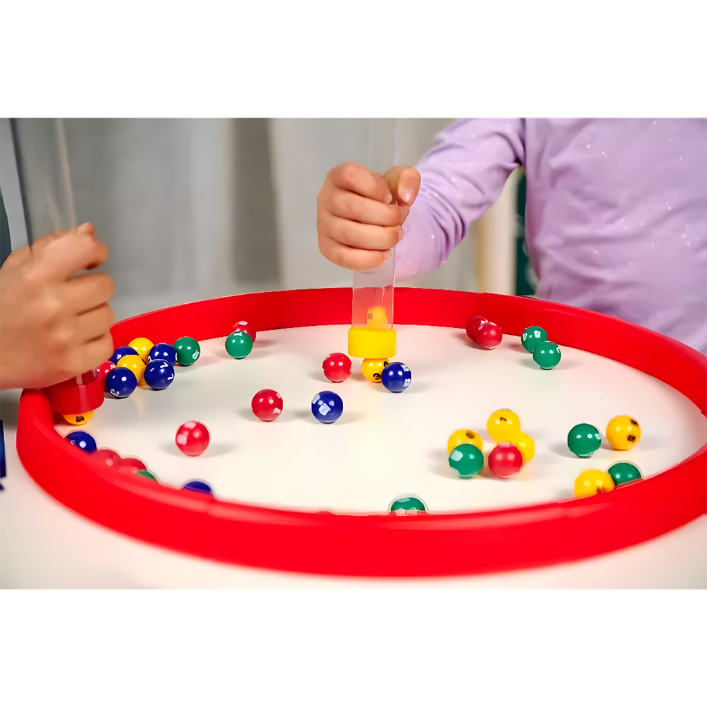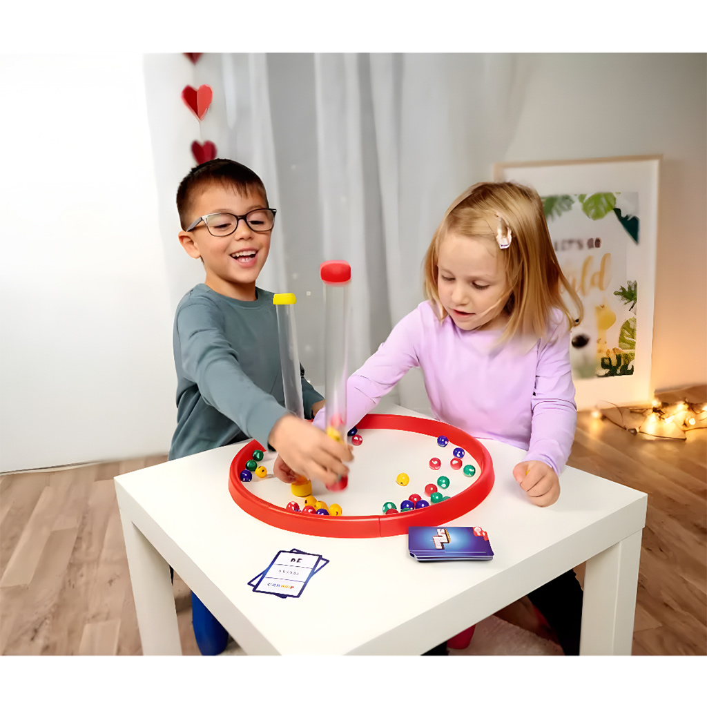 A játék során minden játékos egy átlátszó csövet kap színes végződéssel, és egy közös játéktéren kell a megfelelő színű vagy számú golyókat összegyűjteni – a feladványkártyák alapján. Aki a leggyorsabban tudja a kártyán szereplő sorrend szerint összeszedni a golyókat, az viszi a pontot! A kis golyók különféle színekben és számozással is el vannak látva, így a játék nemcsak szórakoztató, hanem fejleszti a szín- és számfelismerést, valamint a koncentrációt és a kézügyességet is.