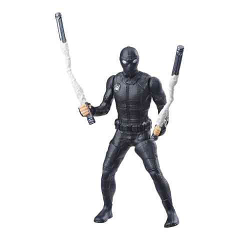Pókember az Idegenben című új filmben egy különleges lopakodó öltözékben is feltűnik, mely leginkább egy ninja szerelésre hasonlít. Ezzel a különleges szereléssel érkezett meg ez a különleges figura is, melynek lábait megnyomva a kezei mozognak. A szett tartalmazza a különleges, pókhálóval átszőtt botokat is, amivel Pókember felveheti a küzdelmet az ellenséges figurákkal. A figura egyszerűen kézbe véve működtethető és a mozgásnak hála még élethűbb játékélményt biztosít.