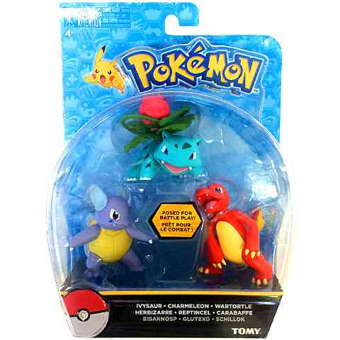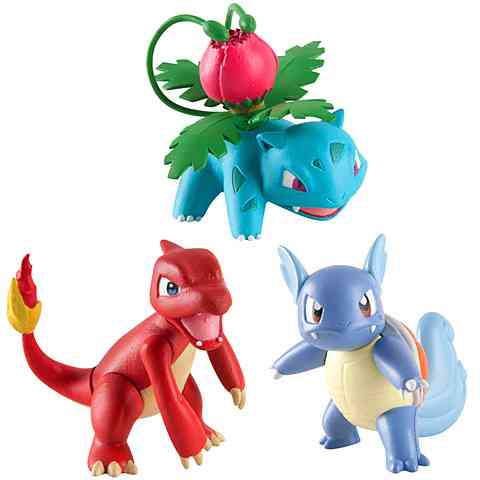 A Pokémon mese kezdetén Ash három kis Pokémon közül választhat, melyek Charmander, Bulbasaur és Squirtle. E három Pokémon továbbfejlődött változatait szerezheted be a játékhoz, akik különböző támadásaikkal minden ellenfél dolgát megnehezítik. A színes játékfigurákkal pillanatok alatt megelevenítheted a Pokémon mese történeteit, így a szobádban költözhetnek a szórakoztató lények!