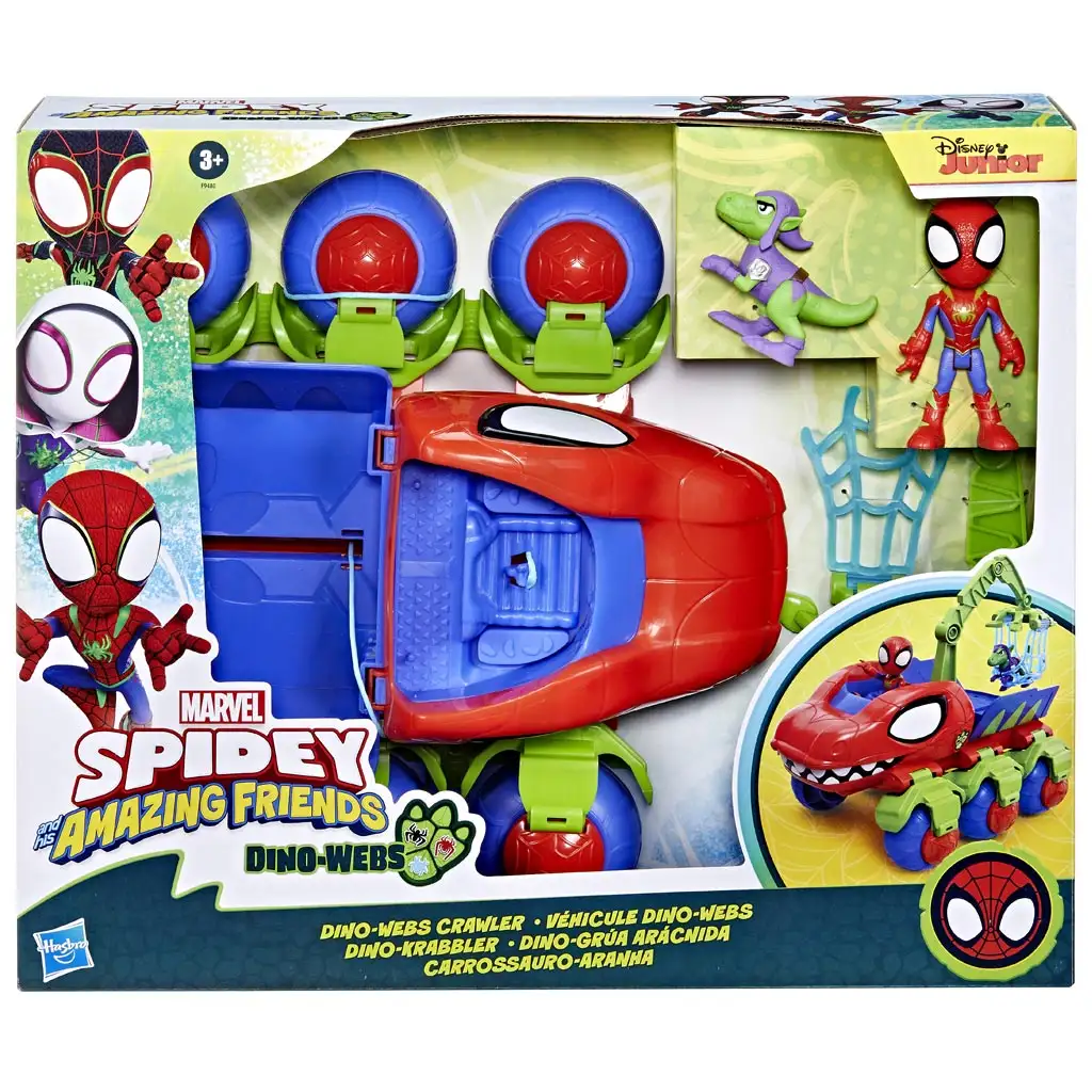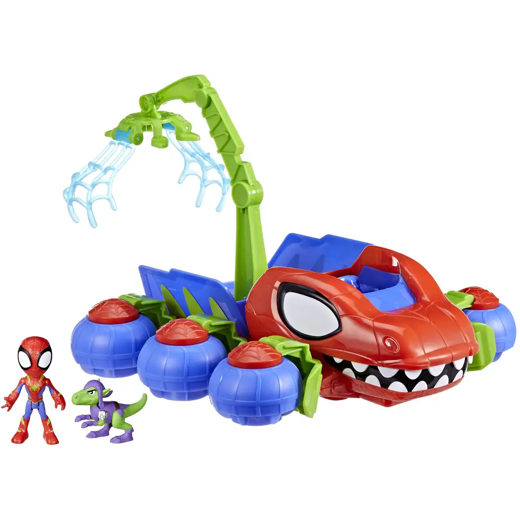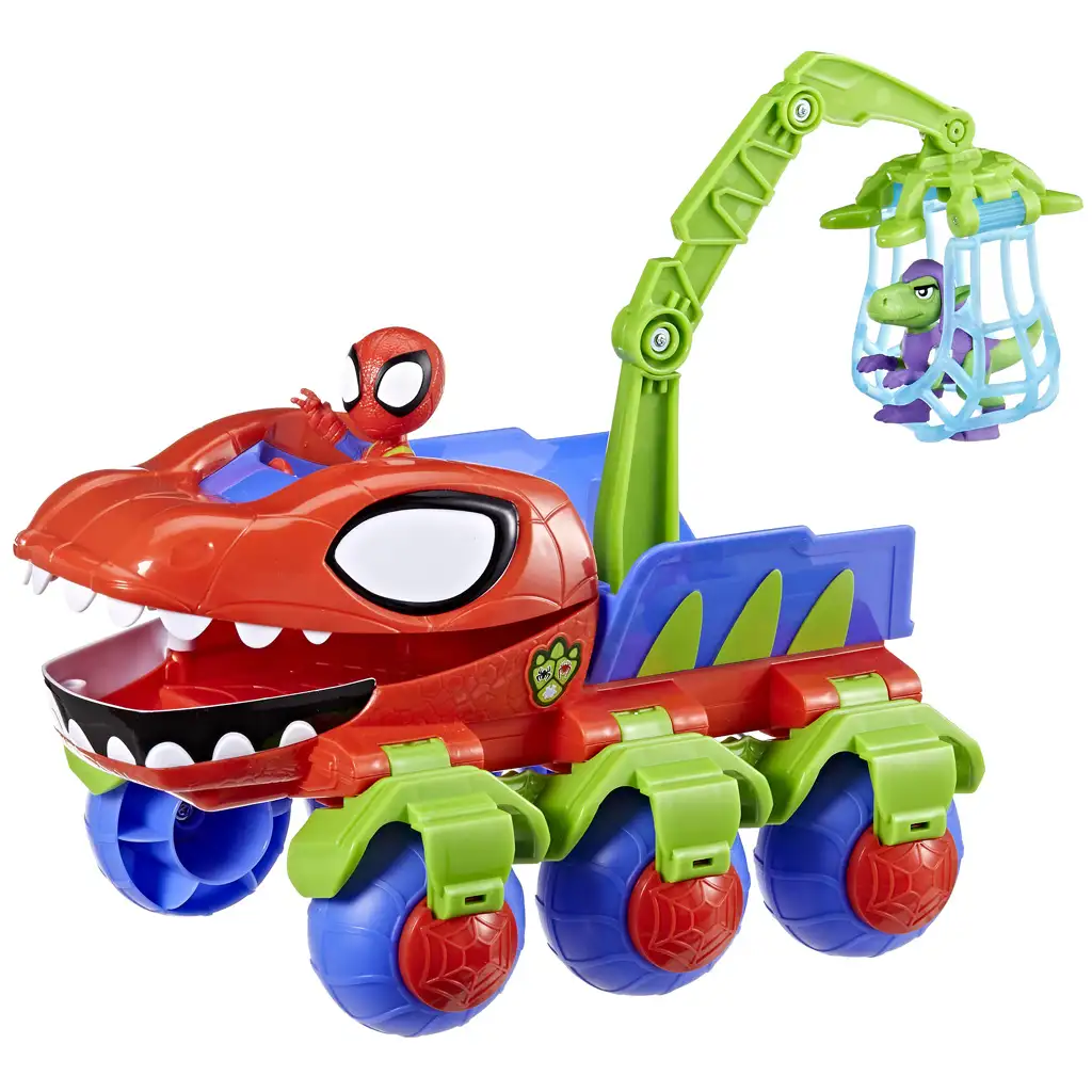 A játék egyik legjobb funkciója a daru végén található hálós ketrec, amelybe a dinoszauruszt vagy más figurákat lehet helyezni. A gyerekek Spidey segítségével felemelhetik és elszállíthatják a kis dinót, miközben saját történeteket találnak ki a Marvel Junior világából inspirálódva. A jármű belsejében egy pilótafülke is található, ahová Spidey könnyedén beültethető, így ő vezetheti a kalandokkal teli Dino-Webs Crawler-t.