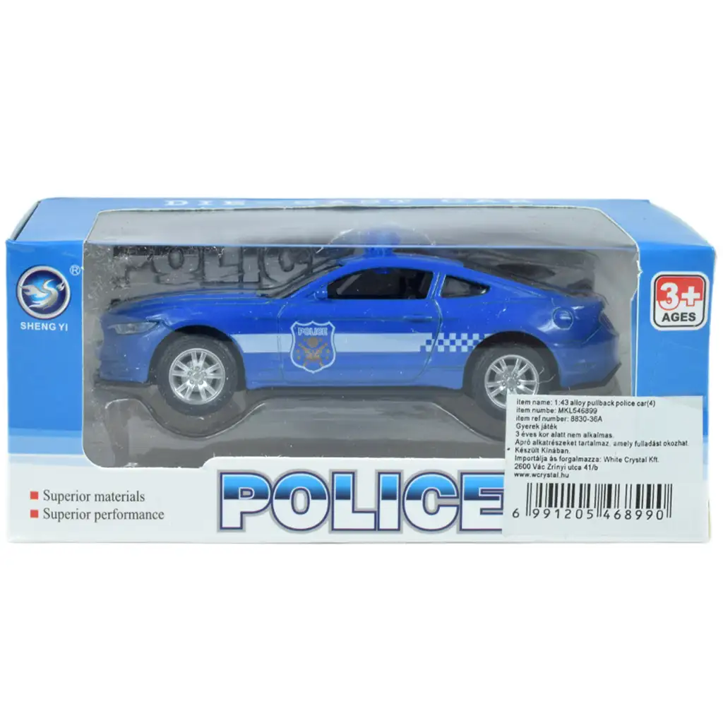 A pull-back hátrahúzós rendőrautók 1:43-as méretarányban készültek, és műanyagból készültek, hogy hosszú ideig kiváló játékpartnerei legyenek gyermekednek.
