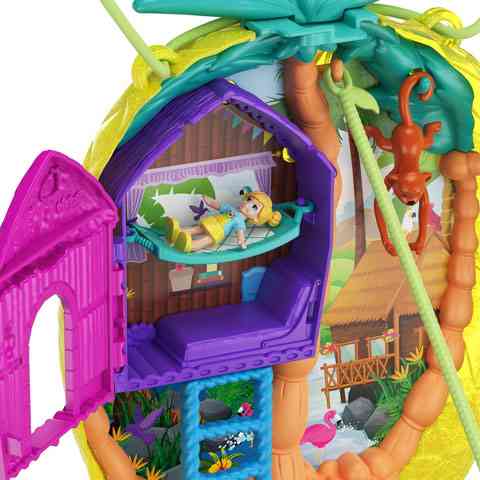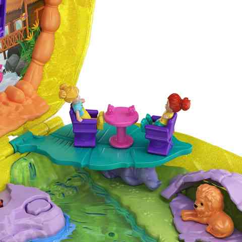 Egy különleges szettet szerezhetsz be gyermekednek, aminek a segítségével Pollyval és Lila-val együtt egy szafari kalandon vehetnek részt. A szettben egy ananász formájú táska található meg, ami kislányod a vállára akasztva bárhova magával viheti. Az ananászt szétnyitva egy pálmafás, indás, vízeséses dzsungel találjuk szembe magunkat, melyben még egy a fák közé épített kis ház is megtalálható. Ebben a házikóban a két jó barát minden este nyugovóra térhet, majd reggel folytatódhat a kaland. Lepd meg gyermekedet ezzel a különleges szettel.