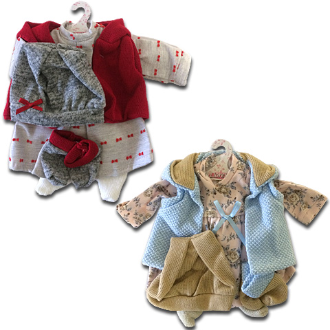 A csodaszép, élethű kidolgozású babáiról méltán híres spanyol származású Llorens gyártó gondolt arra is, hogy a gyerkőcök minden alkalomra más, és más ruhába öltöztethessék át babáikat. A prémium minőségű ruhácskák a hűvösebb időre nyújtanak divatos viseletet a 40cm-es nagyságú babák számára, melyeket több változatban rendelhetsz meg webshopunkból, választásodat kérjük, hogy a megjegyzés rovatban tüntesd fel.
