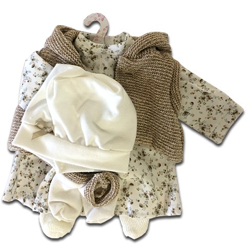 - A szettek tartalma: 1 db ruhácska, 1 db kardigán, 1 db sapka, 1 db sál