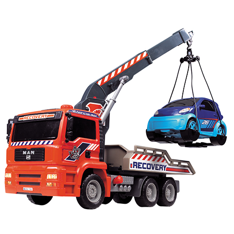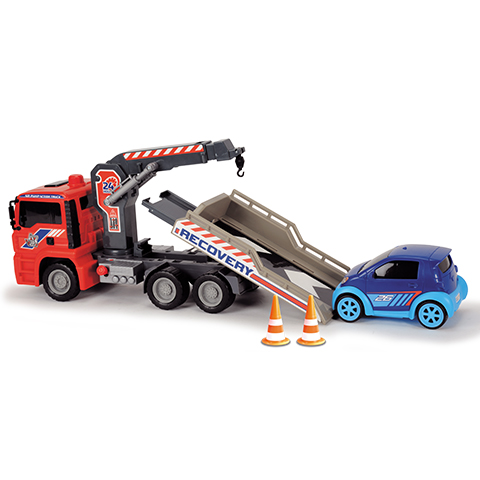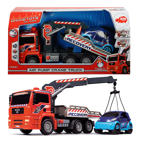 A Dickie Toys esetében megszokhattuk, hogy a rendkívül részletgazdag kidolgozásnak, és a festésnek, illetve matricázásnak köszönhetően a játékautók szakasztott másai a valódi járműveknek. Ebben a csomagban egy autószállító teherautót, és egy kisautót is találunk. A 31 centiméteres szállító autón találunk egy pumpát, aminek a segítségével a darugémet tudjuk emelni vagy épp ereszteni, így igazán valóságos hatása van annak, ahogy a személyautó a szállító platójára kerül. Egészen biztos, hogy ez az autószállító a kisautó gyűjteményed legkedvesebb darabja lesz.