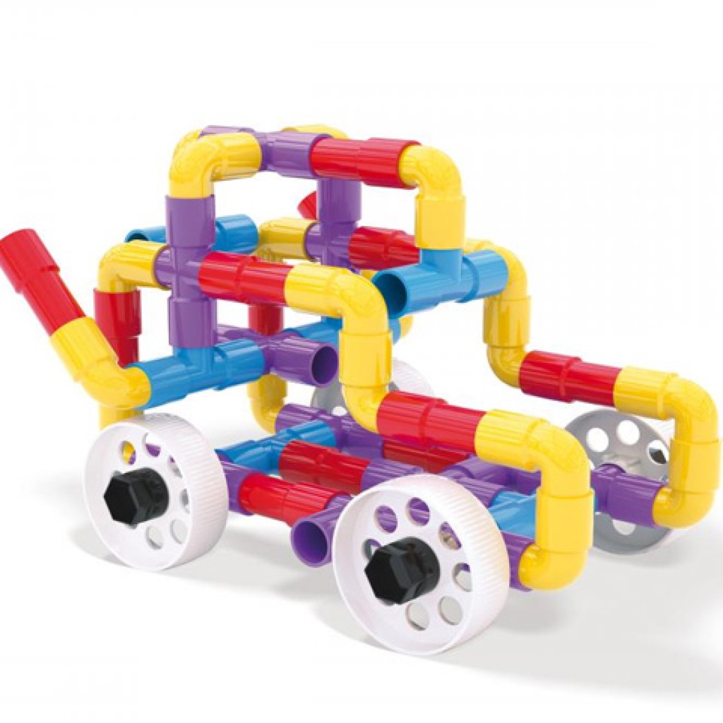Minden viccesebb kerekeken, nem igaz? Ezzel a játékkal a végtelenségig alkothatsz és olyan egyszerű összerakni mindent majd útra bocsájtani mint a karikacsapás. Mindössze 4 fajta cső van viszont egy kis képzelőerővel és kreativitással egy egész arzenálnyi építményt, járművet, robotot és űrállomást tudsz megalkotni. Próbálj i megannyi újfajta kombinációt és módosítást. A magas minőségű anyagok a mesteri formatervezés és a darabméretek mind a részesei annak, hogy garantáltan hosszasan és biztonságosan játszhatsz és örömödet lelheted ebben a csomagban.