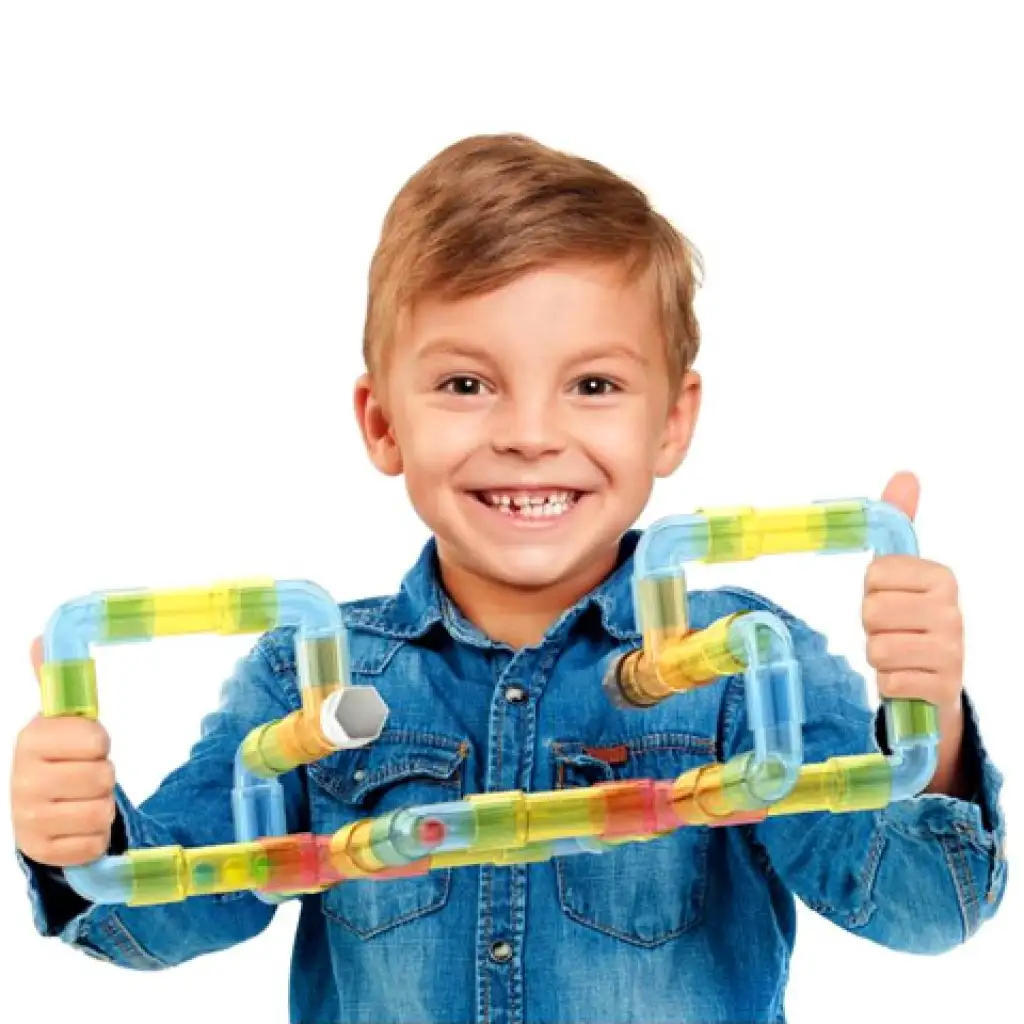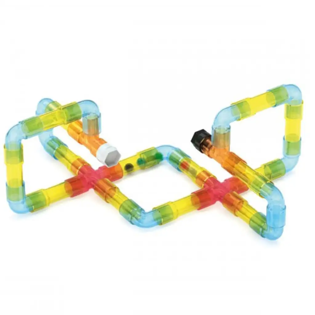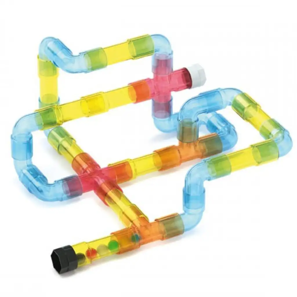 Izgalmas golyópályát hozhatnak létre a kicsik a játék során, melynek különlegessége hogy a térbeli építményt csőlabirintusként használhatják. A szettben különböző típusú elemeket találnak a gyerekek, így az egyenes cső elemek mellett találnak L-alakú, T-alakú, valamint kereszteződés elemeket is. A labirintusba helyezett golyókat a pályán végigvezethetik a gyerekek, majd a megjelölt végződés elemnél kivehetik azokat belőle.