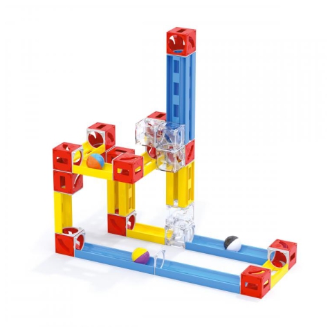 A Quercetti Cuboga golyópálya már a legkisebbek számára is remek szórakozást és izgalmakkal teli kreatív alkotást nyújt. A pálya úgy lett kialakítva, hogy az elemek könnyen használhatóak és legyenek. A sarokelemek mindegyike jelöli a golyó menetirányát, így építésnél ezeket egyszerűen és átláthatóan lehet csatlakoztatni az egyenes csövekhez és utakhoz. A golyó is nagy méretű és színes, hogy látványosabb legyen a legördülése a pályán. A szett összesen 150db építőelemet és kiegészítőt tartalmaz, melyekkel izgalmas pályák alkothatóak. A pályák megépítésében szettben található képes útmutató is segítséget nyújt majd.