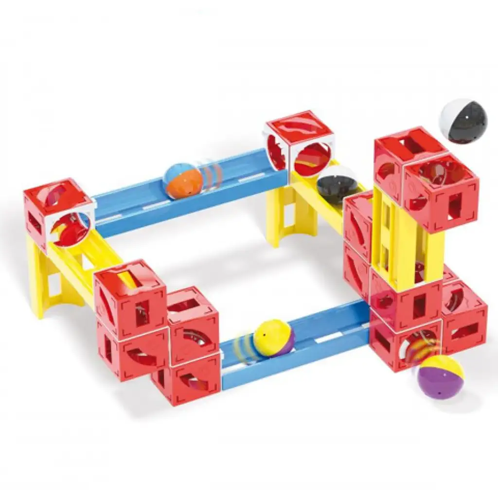 Ez egy teljesen újfajta építőkockás játék amivel golyópályákat hozhatsz létre. A Cubogával a golyók a lapos pályán de akár felfelé is száguldanak köszönhetően a különleges belső kialakítású elemeknek, amik előre lökik a golyókat ezzel mágikusan megnövelve a sebességüket. Vicces és kreatív dolog új pályákat létrehozni a kockák és az egyenes elemek összeillesztésével, több ezerféle variációt kaphatsz és csak rajtad múlik, hogy sikerül-e megtalálnod azt a versenypályát amin a leggyorsabban végigszáguld a golyód megállás nélkül. A nagyon gondos tervezés és a top kategóriás anyagok biztosítást jelentenek a hosszú órákig tartó biztonságos játékra.5