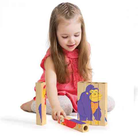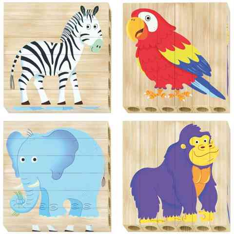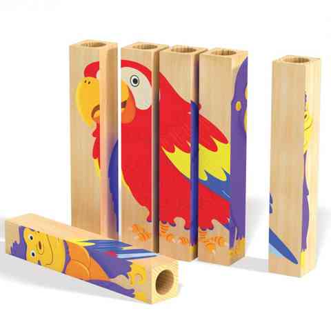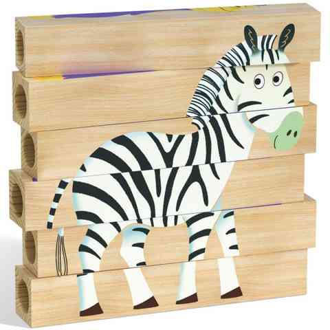 A 6db nagy négyszögletes fa rúdból különböző állatok képeit hozhatod létre és variálhatod kedved szerint. A rudak négy oldala négy állatot rejt: elefántot, zebrát, gorillát és papagájt rakhatsz ki belőlük ha megfelelően állítod össze őket. Ha már profi módon megy a vadon élő állatok kirakása, hozz létre a saját képzeletedben megszületett hibrid élőlényeket, készíts papagáj testű gorillát vagy zebra fejű elefántot. A rudak nagy méretének köszönhetően akár már két éves kortól használhatod és fejlesztheted a kreativitásod, a kézügyességed és a mozgáskoordinációd egyaránt.
