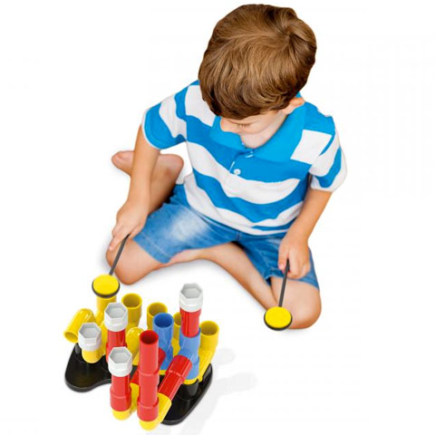 Gyerekjáték lesz a zenélés ezzel a különleges xilofonnal, melyet a kicsik maguk építhetnek meg a kreatív játék során. A 37db színes cső elemből egyszerű lesz a hangszer megépítése, melyhez a xilofon alapját is használhatják. Az eltérő hosszúságú csövek változó magasságú hangot adnak majd ki, ezáltal működő hangszert hozhatnak létre. A szettben található ütőkkel azonnal kezdetét is veheti a zenélés és ezáltal a gyerekek ritmusérzékének fejlesztése.