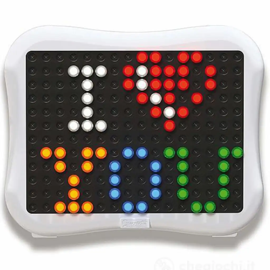 A Peg Brite világító kristály pötyi szett a Quercetti egyik legújabb, díjnyertes játéka, mely új dimenziókba emeli a pötyi kirakók világát. A gyönyörűen formatervezett, beépített világítással rendelkező alap a hagyományos pötyikhez hasonlóan számtalan érdekes és izgalmas kép megalkotására ad lehetőséget. A kirakott minta azonban a Peg Brite esetében mégis rendkívül különleges, ugyanis a világítás bekapcsolása után minden egyes pötyi a táblán egy önnálló kis lámpatestként funkcionál, melytől biztosan tátva marad a szánk.