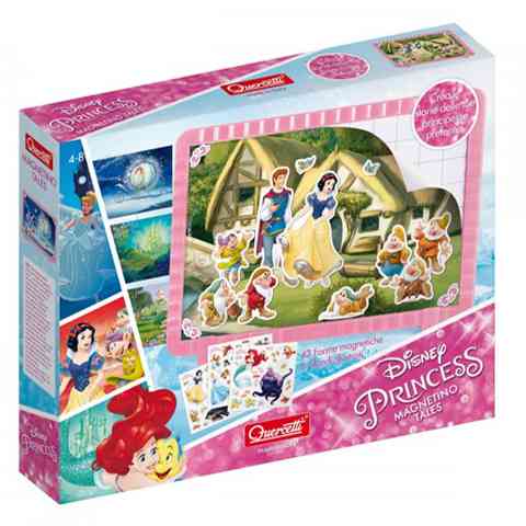 A Quercetti bemutatja: "Disney Hercegnők Mágneses Meséi", egy színes mágneses tábla ahol kitalálhatsz új történeteket a kedvenc Disney hercegnőidnek. Hófehérke, Hamupipőke és Ariel a kishableány a főszereplői ennek az ezerféle történetnek. A hercegnők és barátaik mágneses figuráit hat különböző felcserélhető háttérre helyezheted el a kiegészítőikkel és jelmezeikkel együtt. Ez arra biztatja a gyermekeket, hogy érdekes új történeteket találjanak ki és meséljék is el őket. A tábla alapjára lehet írni vagy el lehet rajta helyezni a mágneseket.