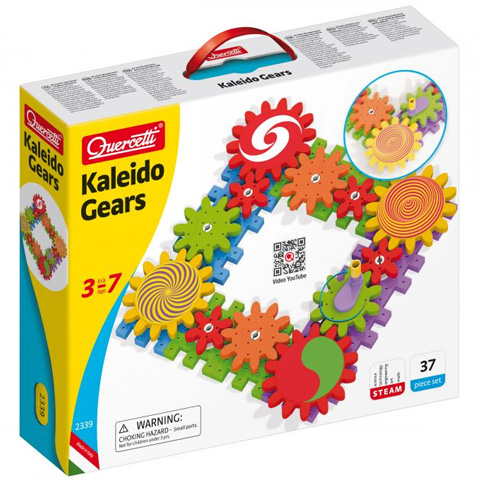 A Kaleido játék nagyszerű választás a gyerekek számára, hiszen már egész kis korban megismerkednek a fogaskerekekkel és azok működésével, hogy milyen módon kapcsolódnak egymáshoz, illetve hogy miként hat a két kerék eltérő mérete. A kezdő készlet 37 elemből állítható össze, és mint általában a fogaskerekek esetében ha elég ügyesek vagyunk, akkor az egyik kerék mozgatásával az összes többit mozgásra lehet bírni. A játék különlegessége, hogy a talapzaton lévő fogaskerekek többféle módon összeilleszthetők, így szinte megunhatatlan szórakozás forrása lehet.