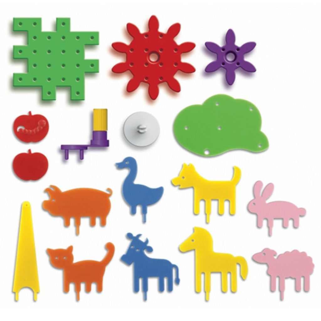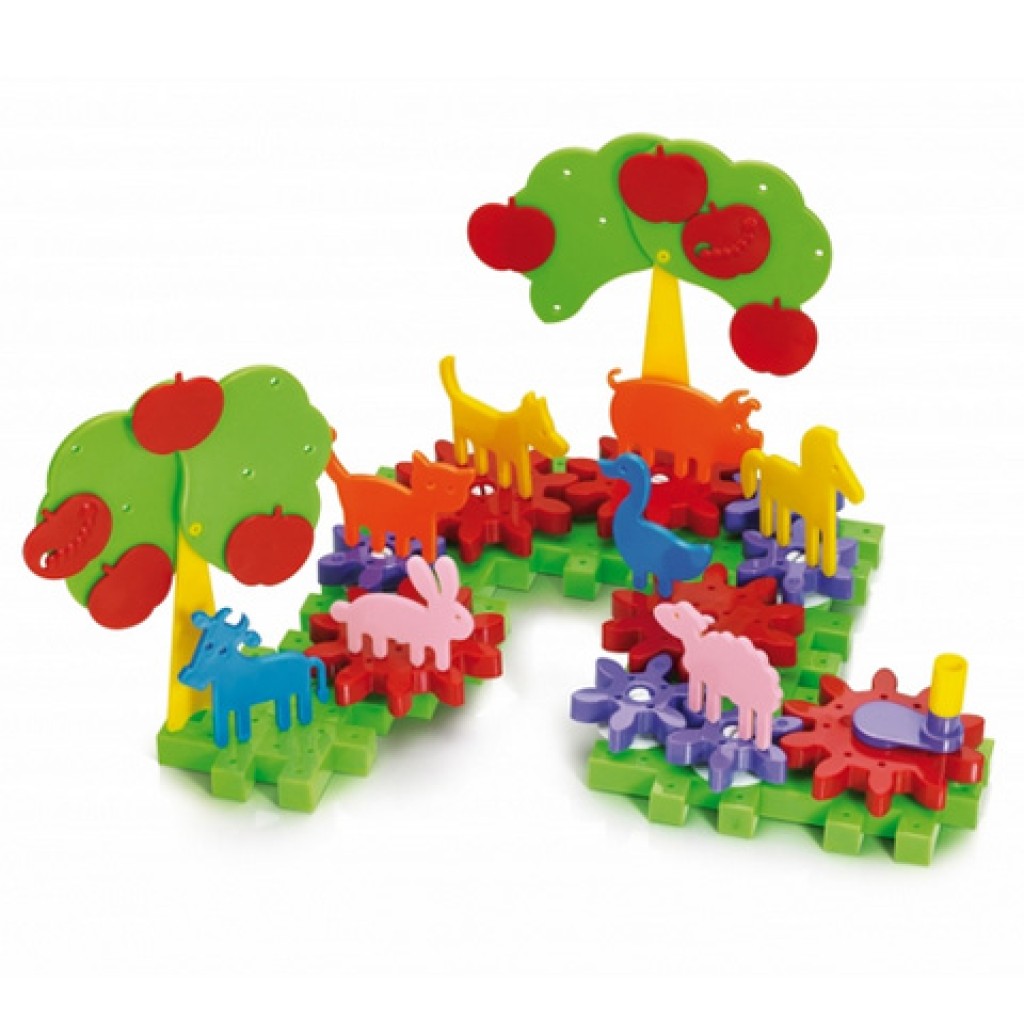 Ezzel a vidám készlettel a gyerekeknek megannyi lehetőségük lesz a szórakoztató percek átélésére. A csomagban található színes elemeknek köszönhetően egy saját farmot is készíthetnek. Minden darabot úgy terveztek, hogy könnyen egymáshoz illeszthetőek legyenek így az aprócska kezek számára sem fog problémát jelenteni például a egy fa összeillesztése, vagy az állatkák helyükre tevése. A játék használata remekül fejleszti a kreativitásukat, a kézügyességeket és a vizuális készségüket is.