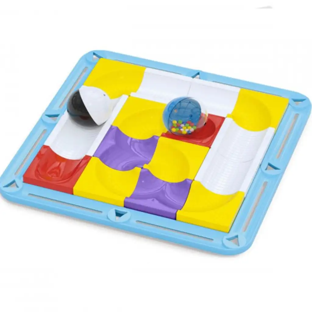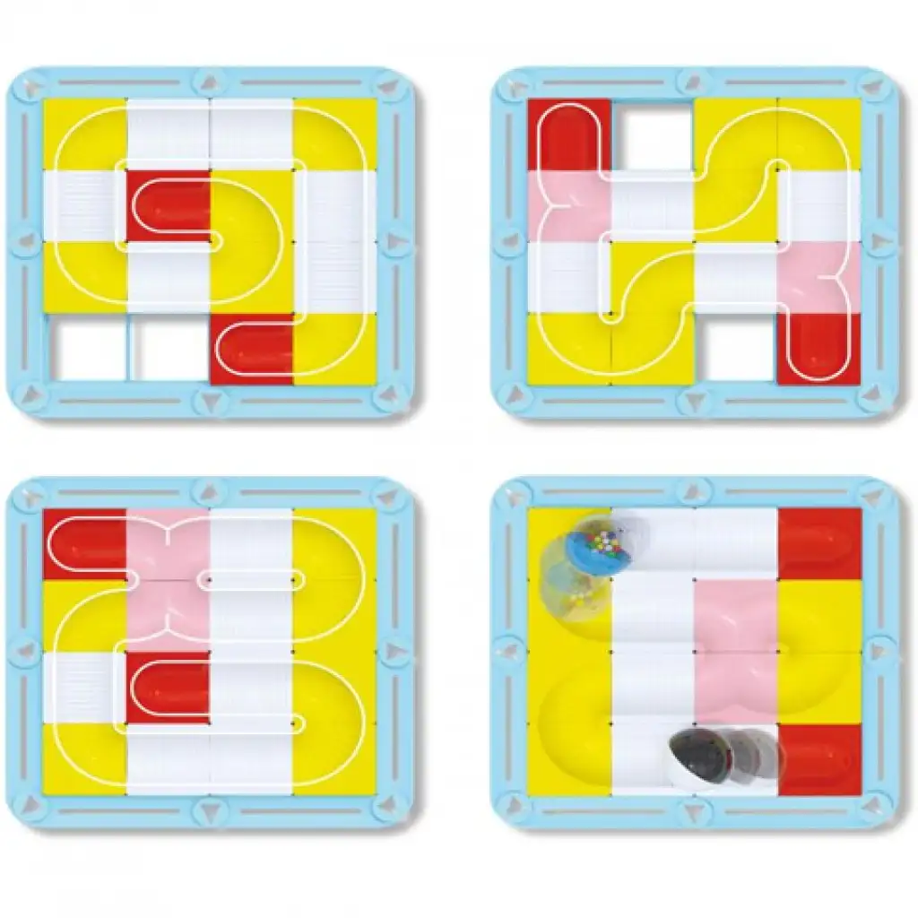 Helyezd el a 16 darab mozgatható elemet a keretben, majd kövesd a labdával a helyes utat a megfelelő sebességgel. Érdekes és meglepő a gyermekek számára a tábla forgatása és a labda mozgás. Állítsd meg vagy fordíts vissza a labdát a kedvedre! A tábla több ezerféleképpen elkészíthető és a felszínét úgy tervezték, hogy egy vicces hangot adjon ki amikor megváltozik a labda sebessége, ez is érdekesebbé teszi a játékot a gyermekeknek. Tulajdonképpen a gyermeked a főszereplője ennek a játéknak hiszen ő dönthet milyen pályára rakja föl a labdát és, hogy fog körbehaladni.